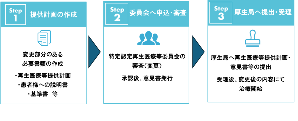 再生医療等提供計画は、受理後も状況に応じて変更が必要となる場合があります。